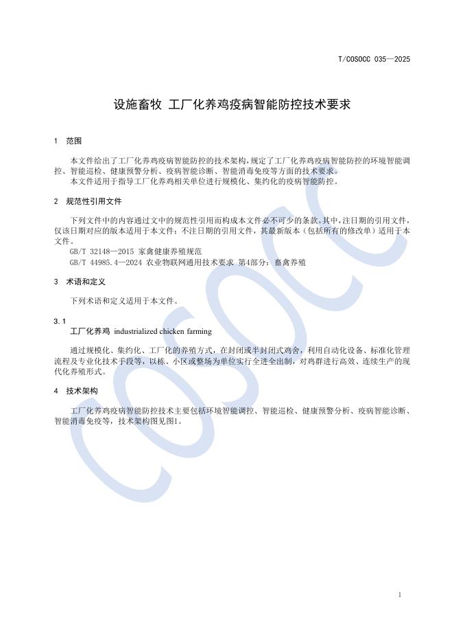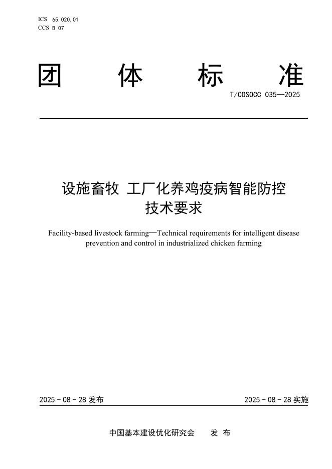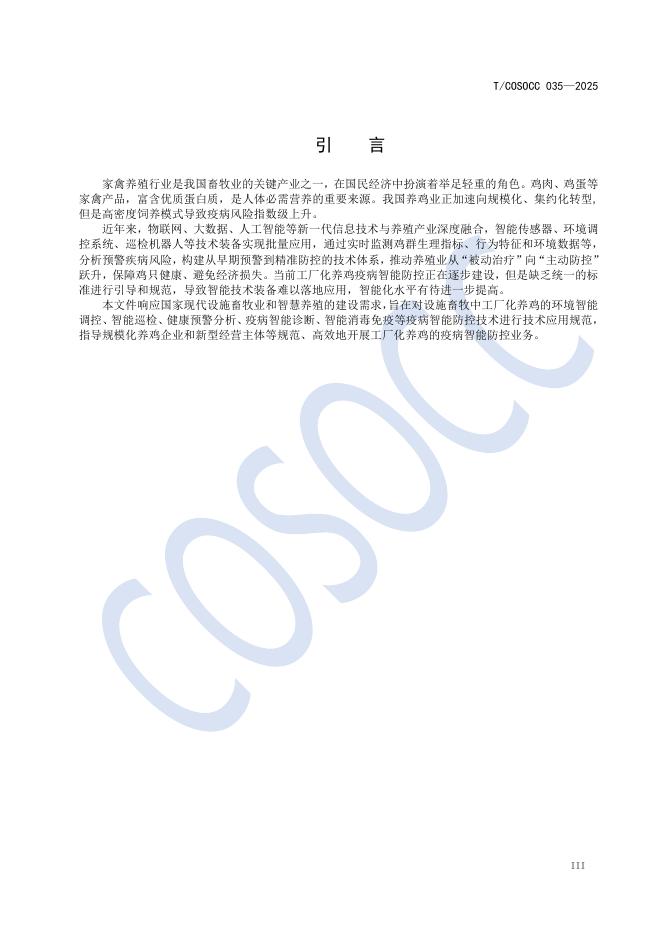 T/COSOCC 035-2025 设施畜牧 工厂化养鸡疫病智能防控技术要求