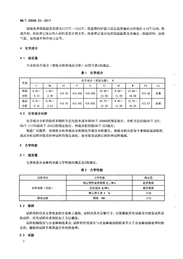 NB/T 20008.33-2016 压水堆核电厂用其他材料 第33部分:控制棒驱动机构用GH5605合金棒