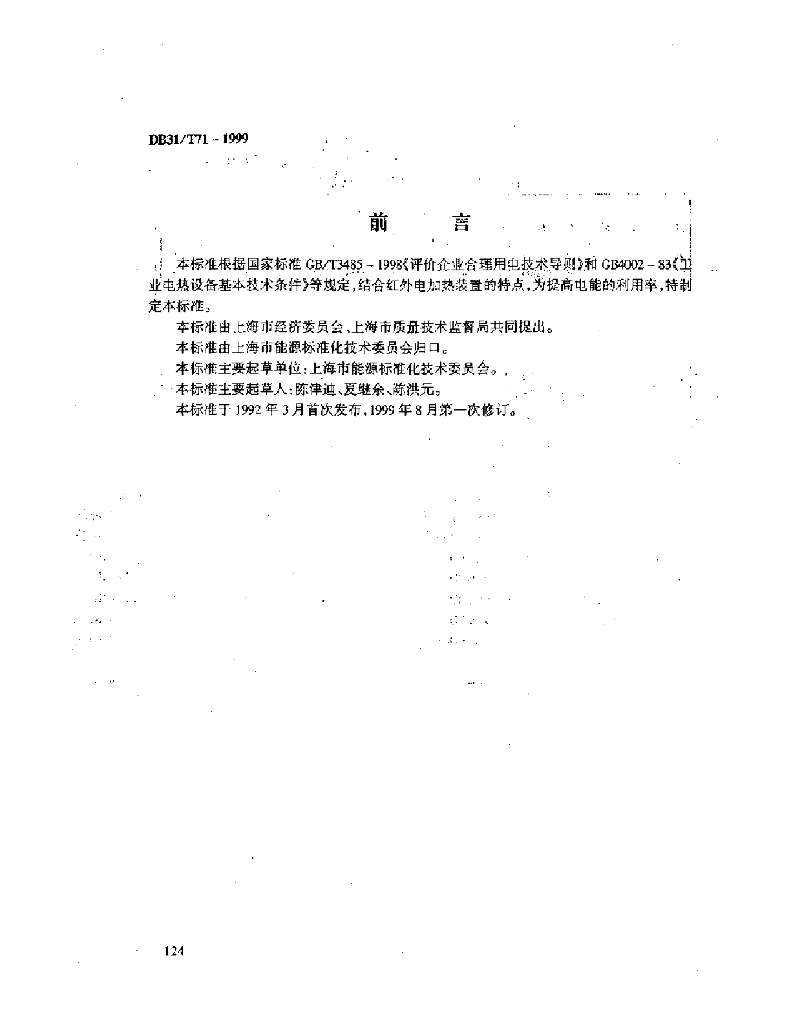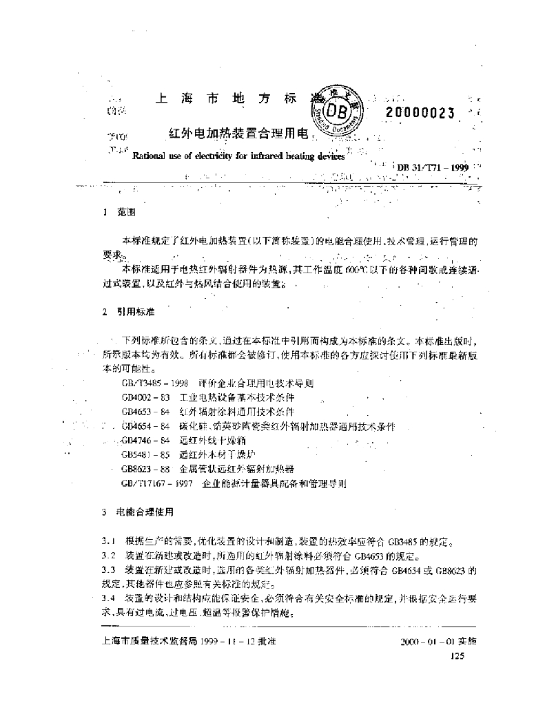 DB31/T 71-1999 红外电加热装置合理用电