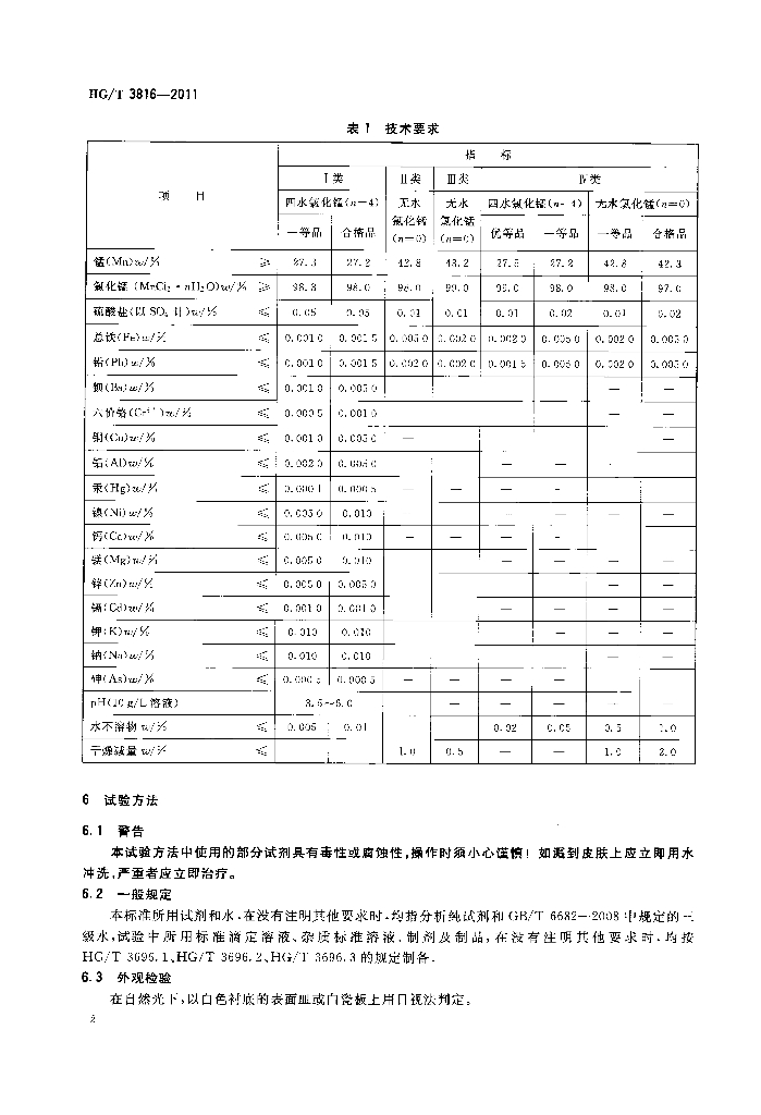 HG/T 3816-2011 代替 HG/T 3816-2006 工业氯化锰