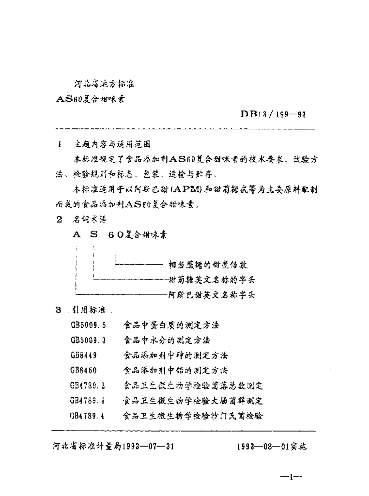 DB13/ 169-1993 AS60复合甜味素