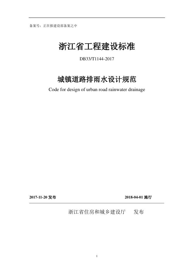 DB33/T 1144-2017 城镇道路排雨设计规范