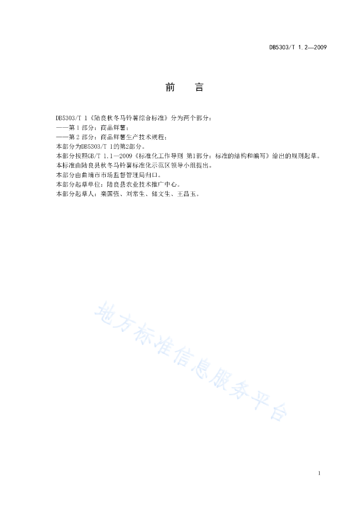 DB5303/T 1.2-2009 陆良秋冬马铃薯综合标准第2部分:商品鲜薯生产技术规程