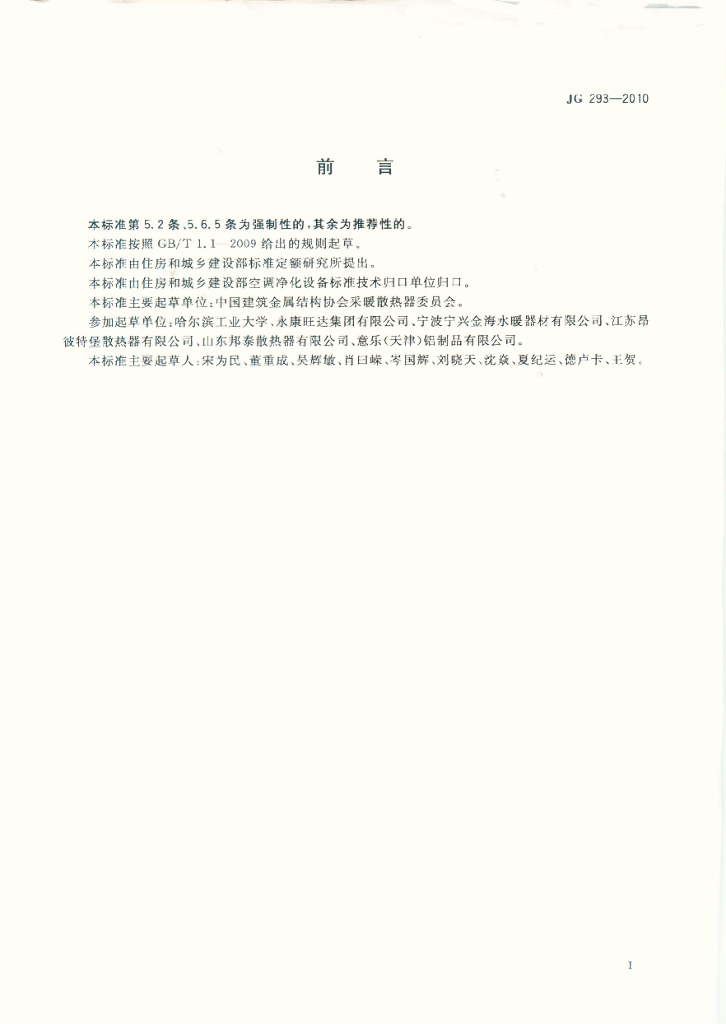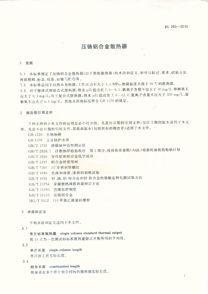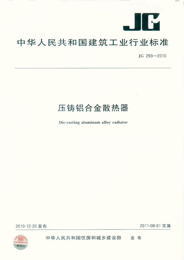 JG 293-2010 压铸铝合金散热器
