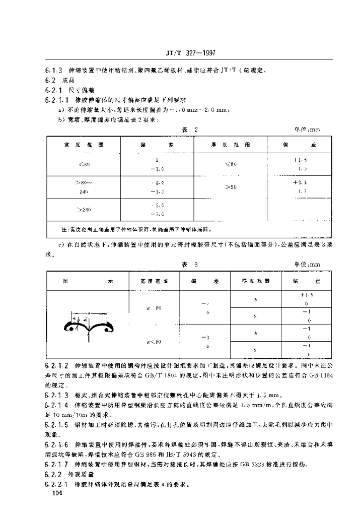 JT/T 327-1997 公路桥梁橡胶伸缩装置