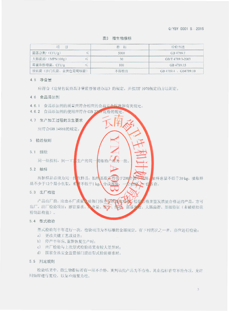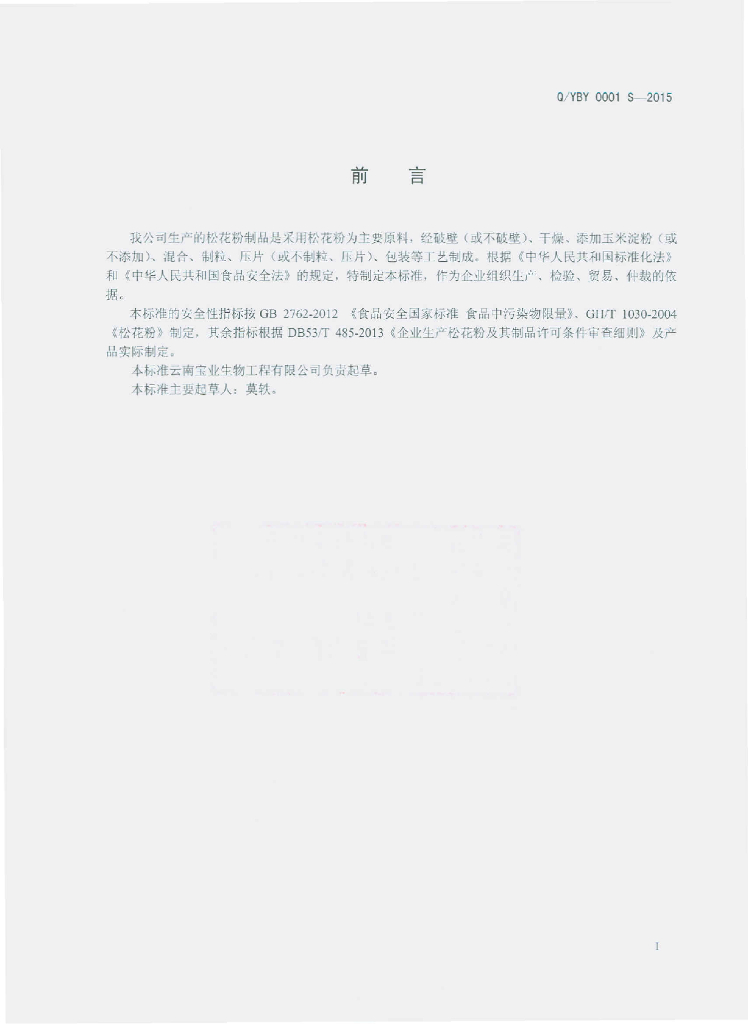 Q/YBY 0001S-2015 云南宝业生物工程有限公司 松花粉制品