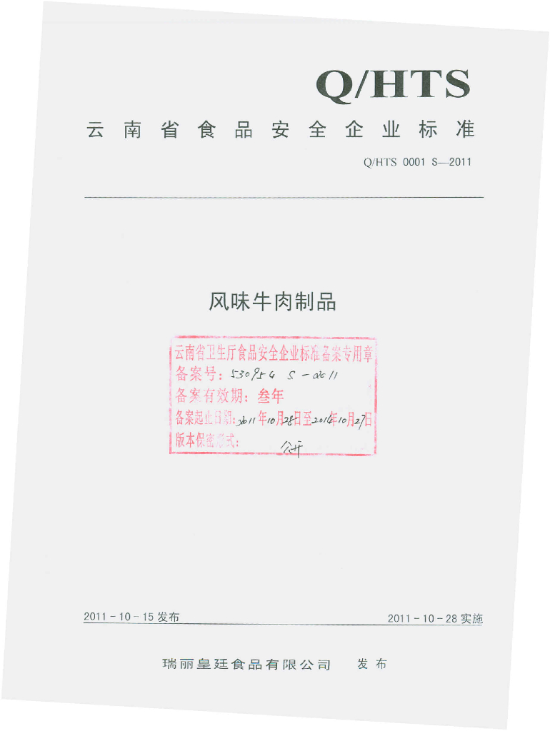 Q/HTS 0001S-2011 风味牛肉干制品