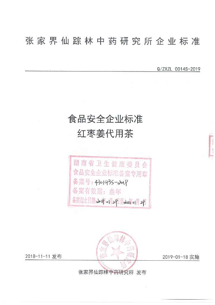 Q/ZXZL 0014S-2019 红枣姜代用茶