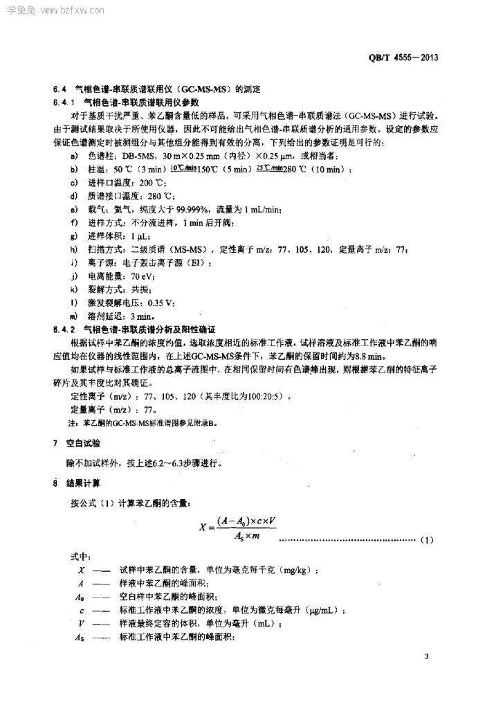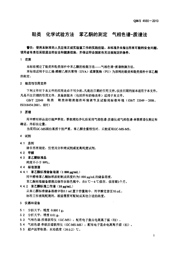 QB/T 4555-2013 鞋类化学试验方法苯乙酮的测定气相色谱-质谱法