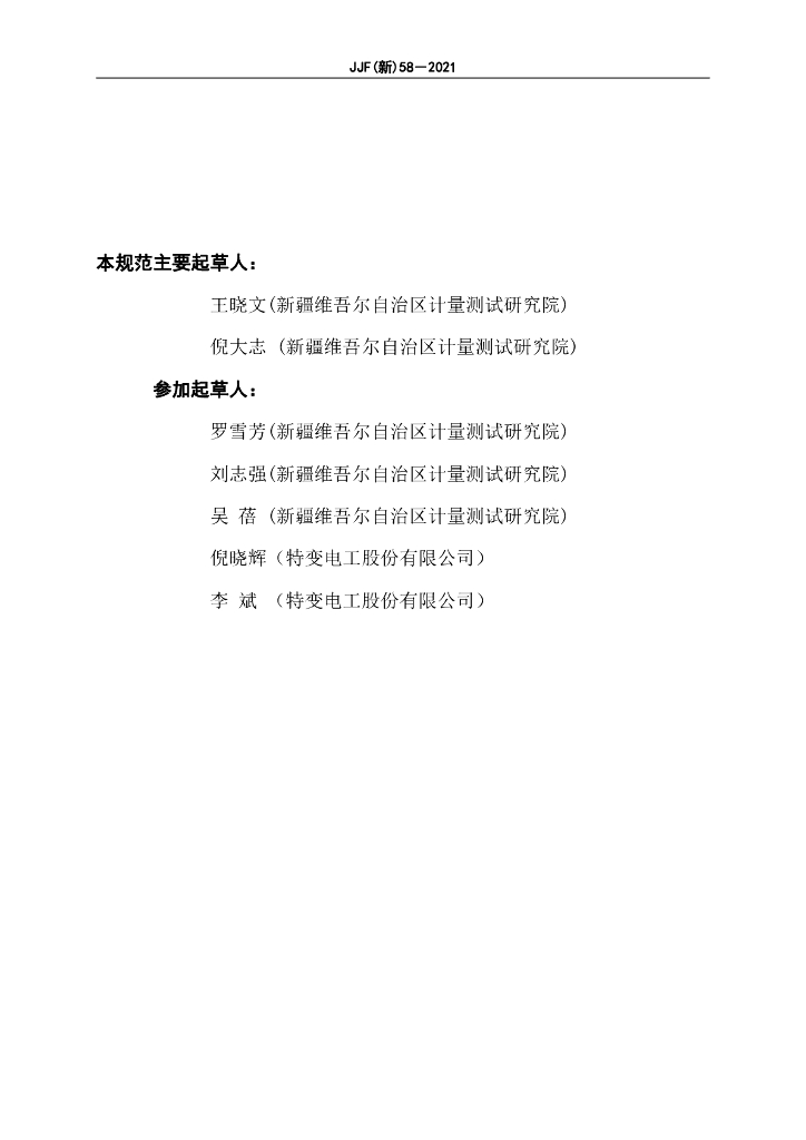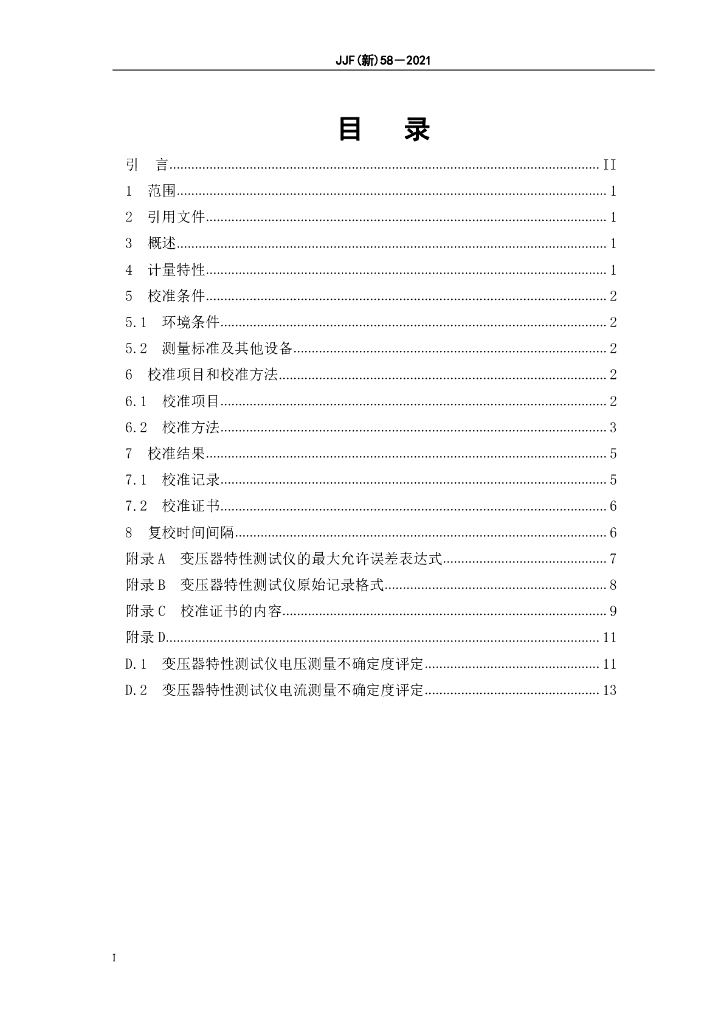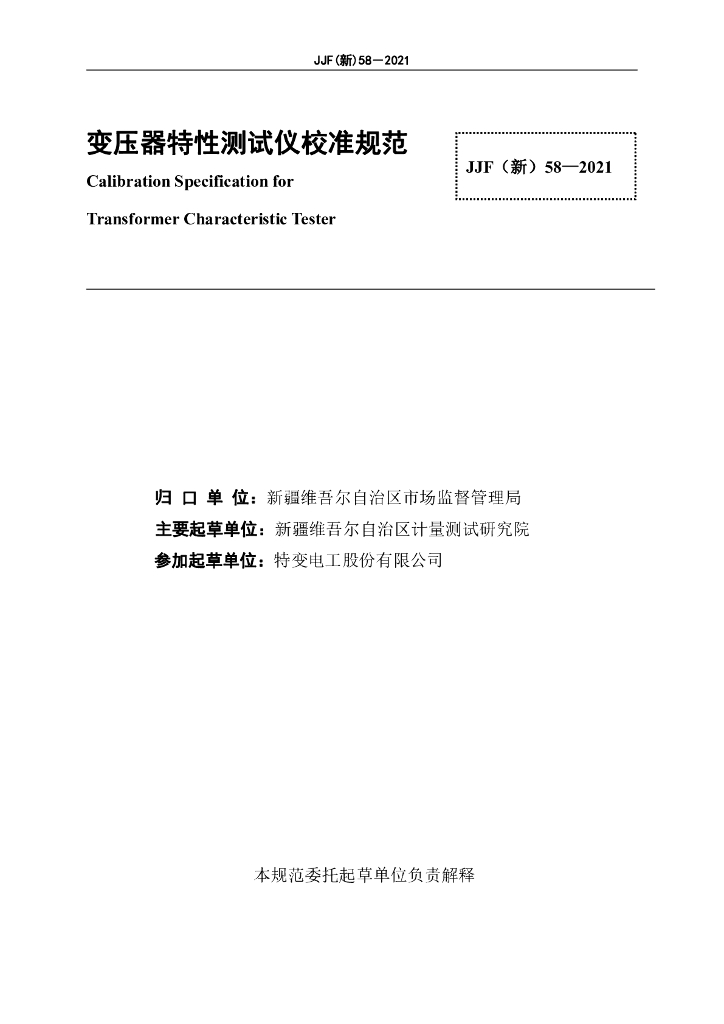 JJF(新)58-2021 变压器特性测试仪校准规范