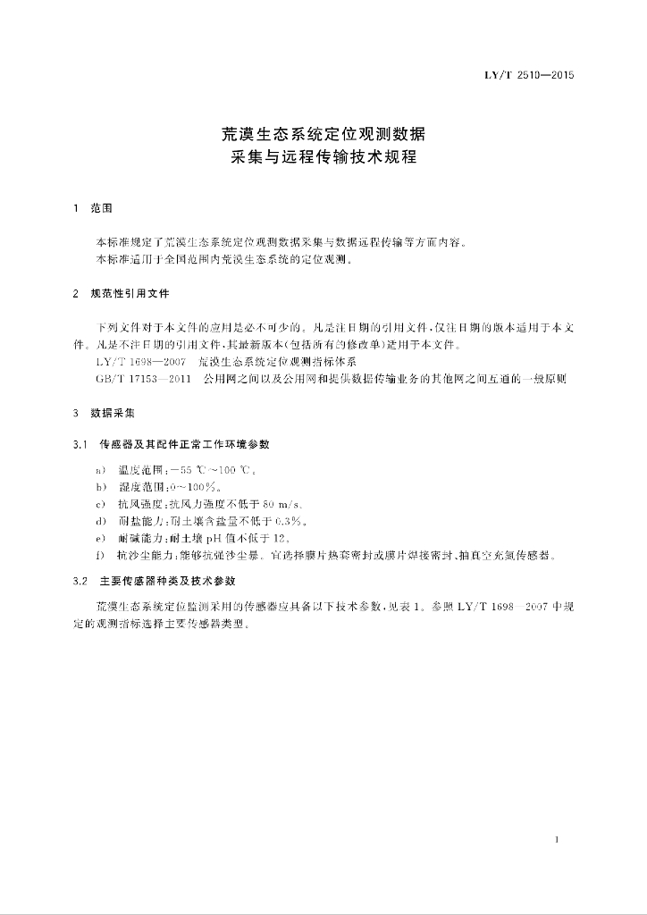 LY/T 2510-2015 荒漠生态系统定位观测数据采集与远程传输技术规程