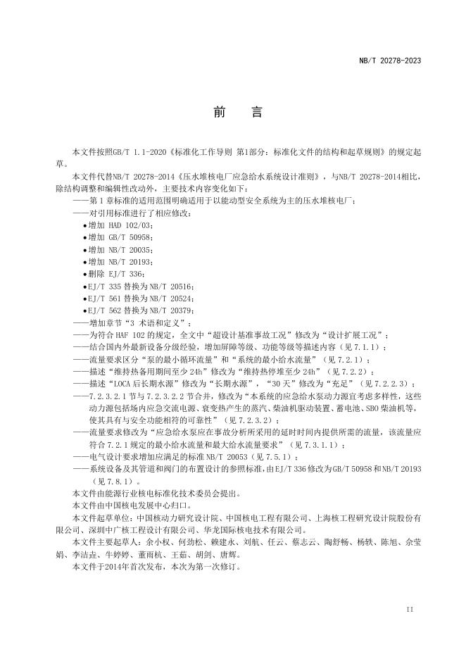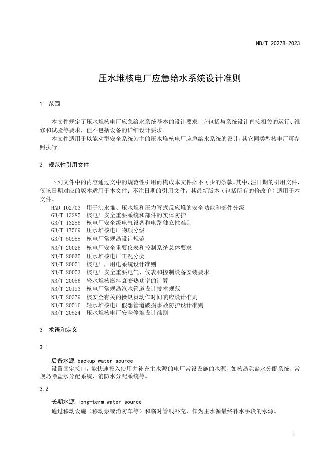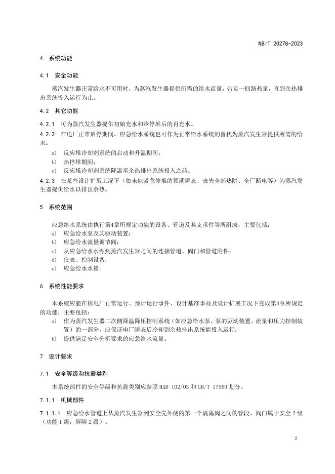 NB/T 20278-2023 压水堆核电厂应急给水系统设计准则
