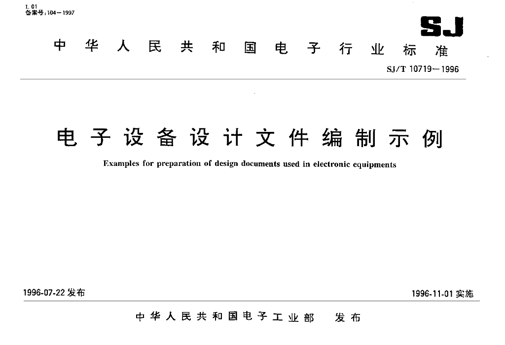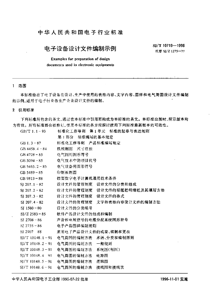 SJ/T 10719-1996 电子设备设计文件编制示例