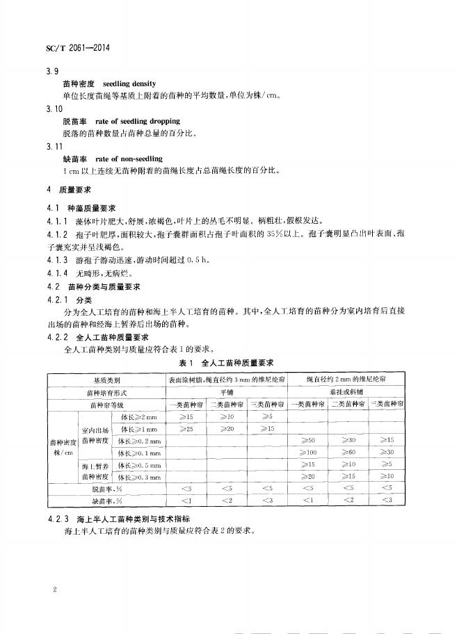 SC/T 2061-2014 裙带菜 种藻和苗种