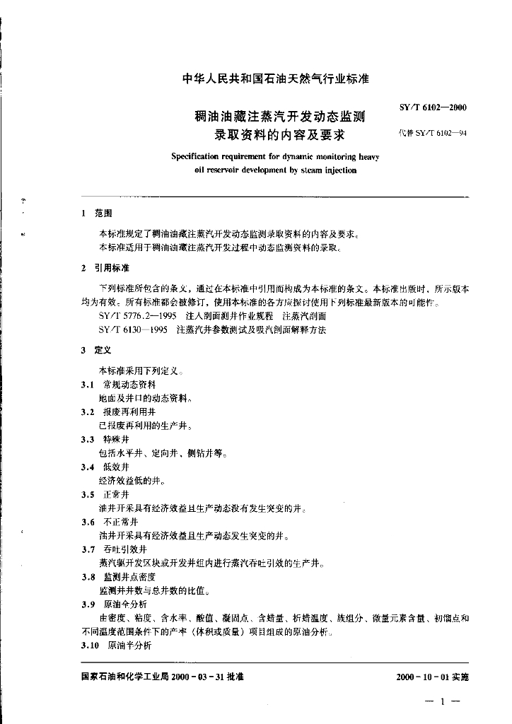 SY/T 6102-1999 稠油油藏注蒸汽开发动态监测录取资料的内容及要求