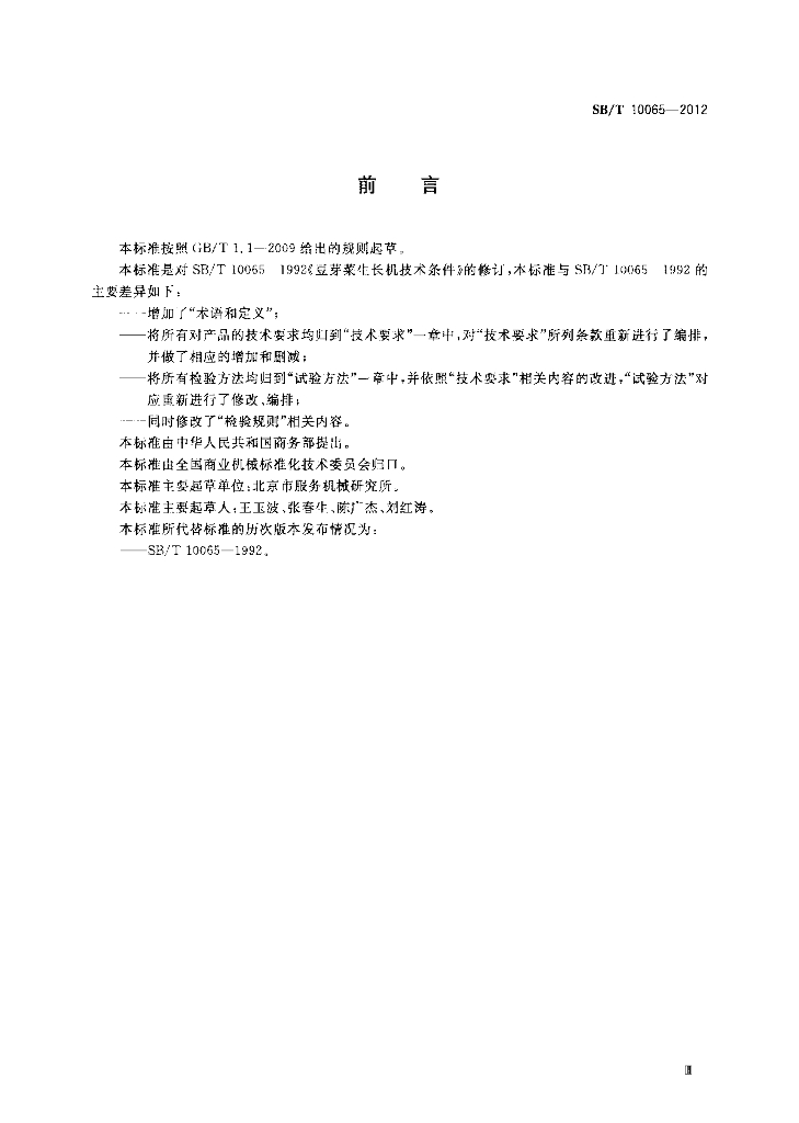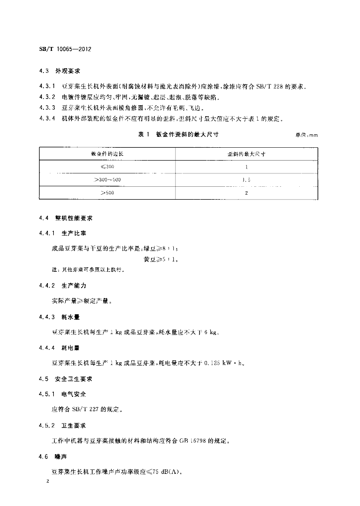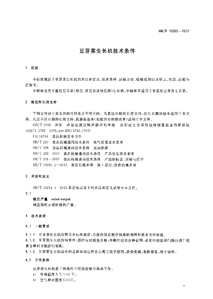 SB/T 10065-2012 豆芽菜生长机技术条件