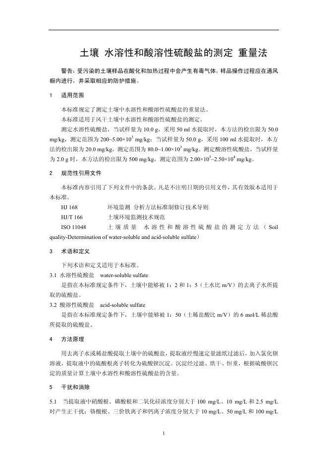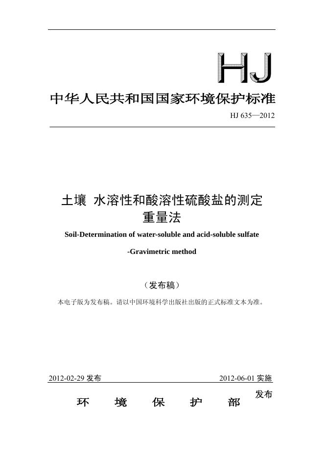HJ 635-2012 土壤 水溶性和酸溶性硫酸盐的测定 重量法