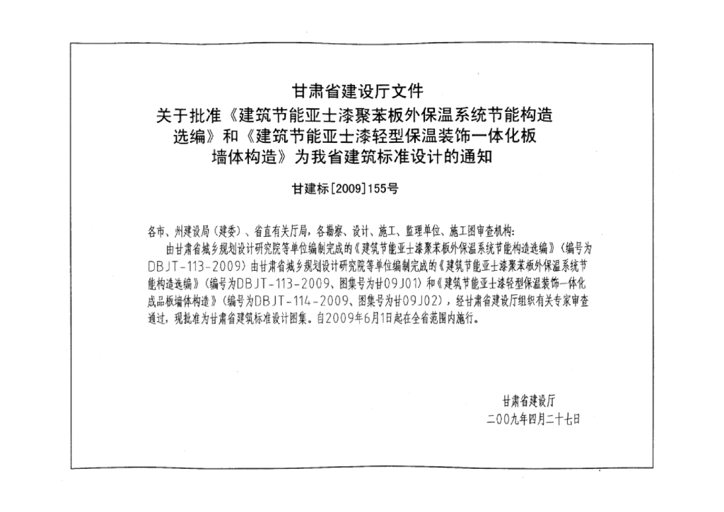 甘09J01 建筑构造图集(DBJT25-113-1009)