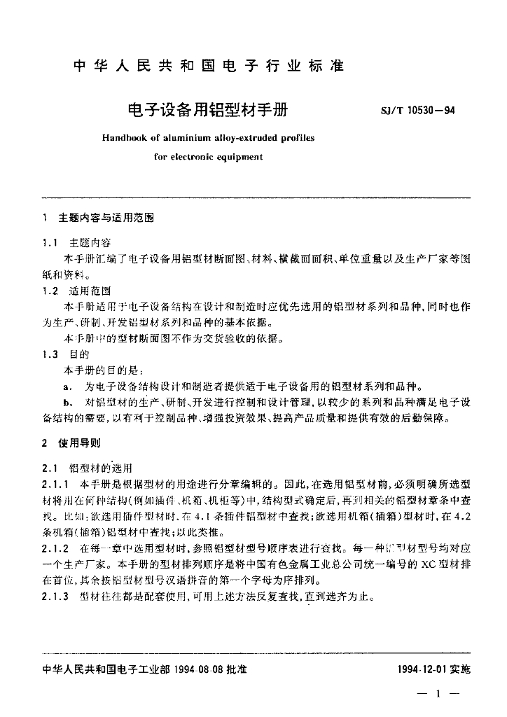 SJ/T 10530-1994 电子设备用铝型材手册