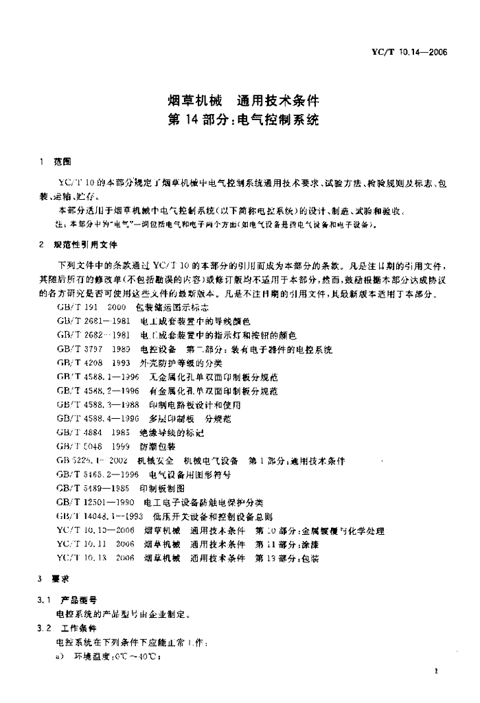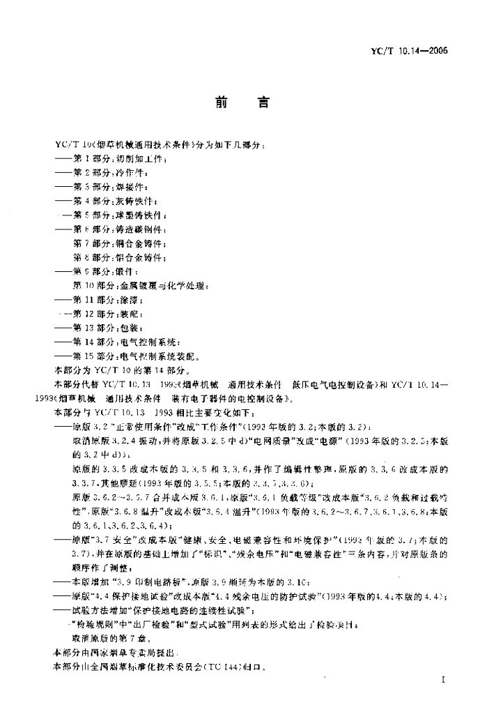 YC/T 10.14-2006 烟草机械 通用技术条件 第14部分电气控制系统