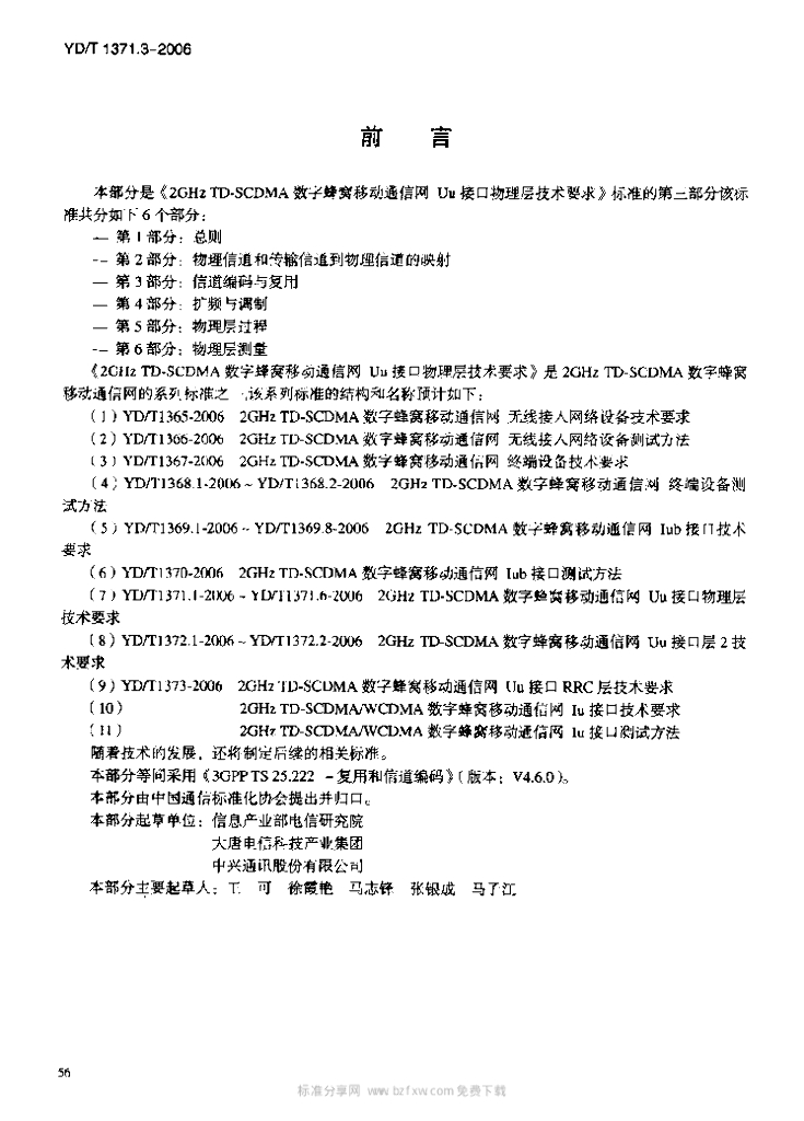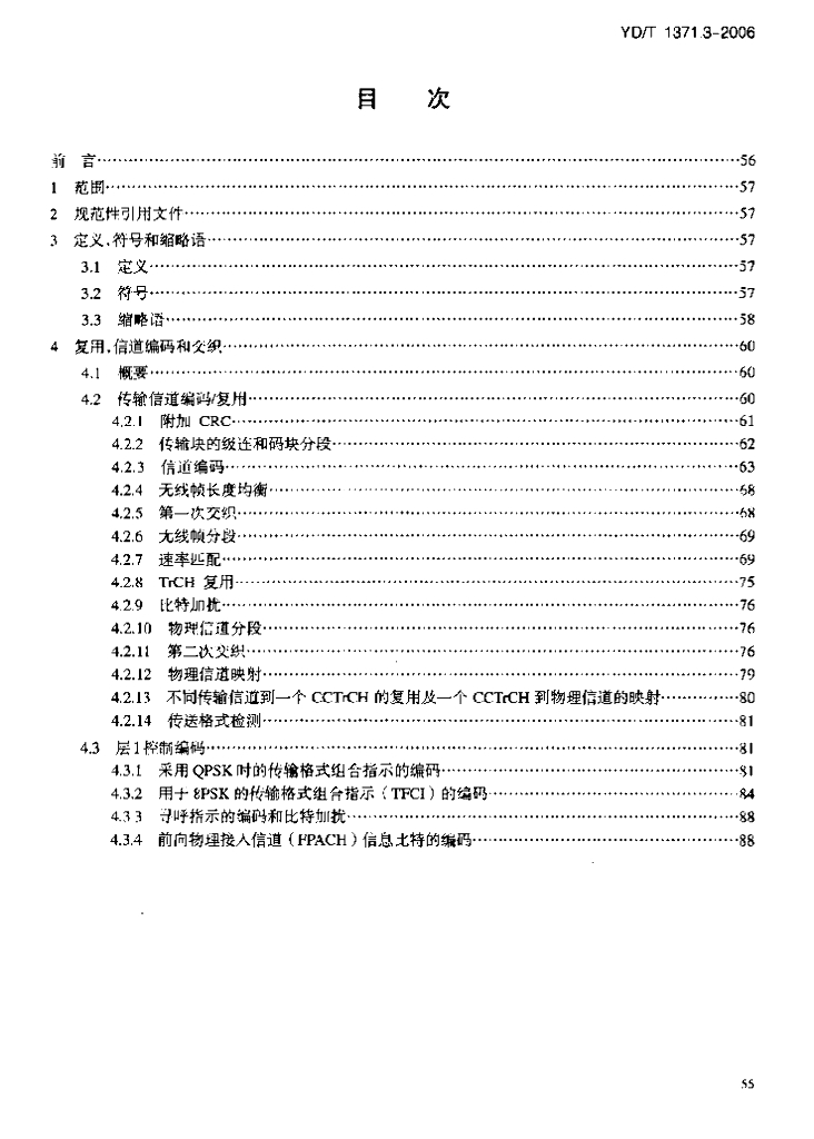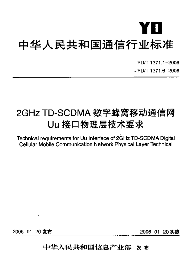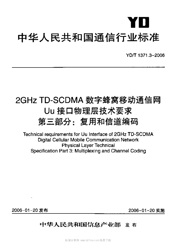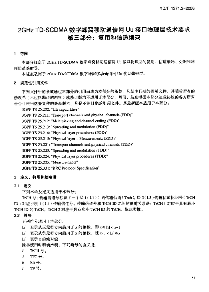 YD/T 1371.3-2006 2GHz TD-SCDMA 数字蜂窝移动通信网 Uu 接口物理层技术要求 第三部分:复用和信道编码