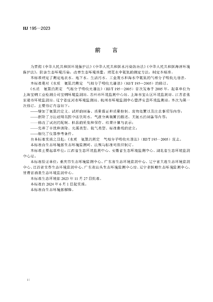 HJ 195-2023 水质 氨氮的测定 气相分子吸收光谱法