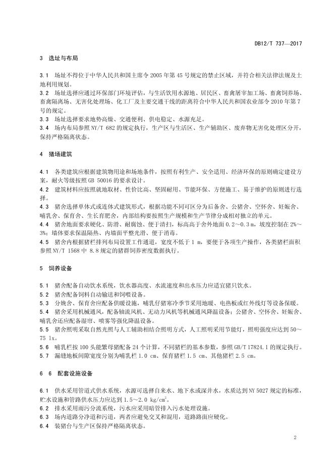 DB12/T 737-2017 生猪标准化规模养殖场建设与管理规范