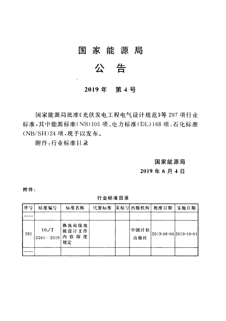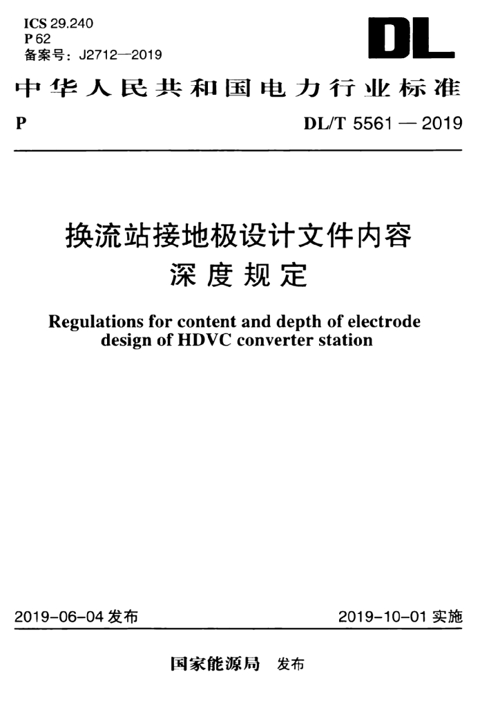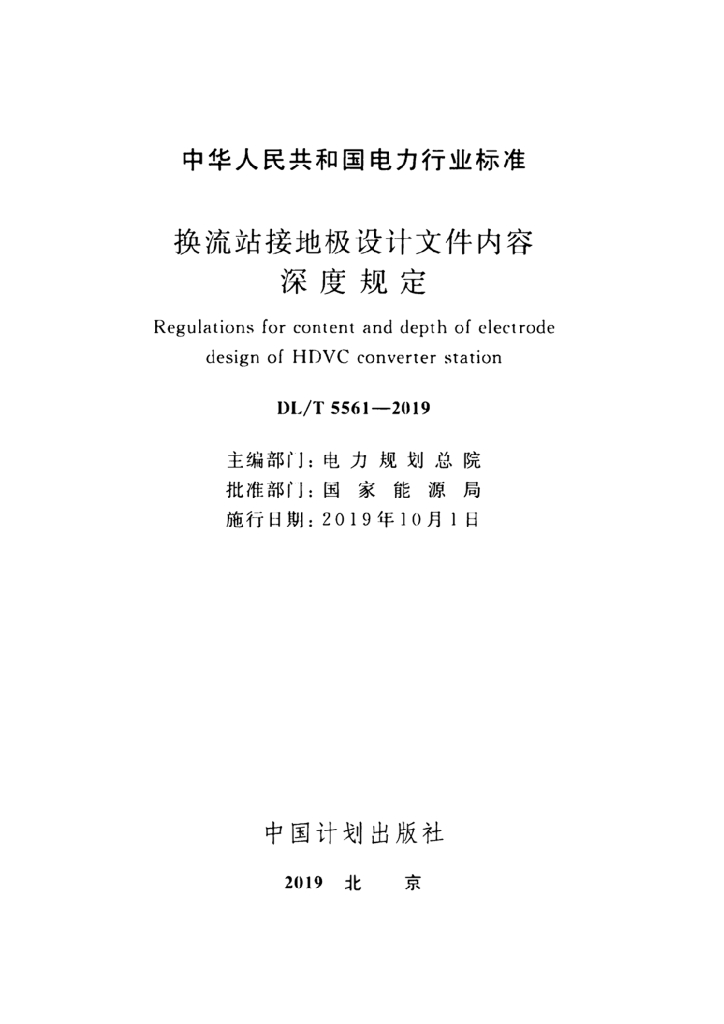 DL/T 5561-2019 换流站接地极设计文件内容深度规定