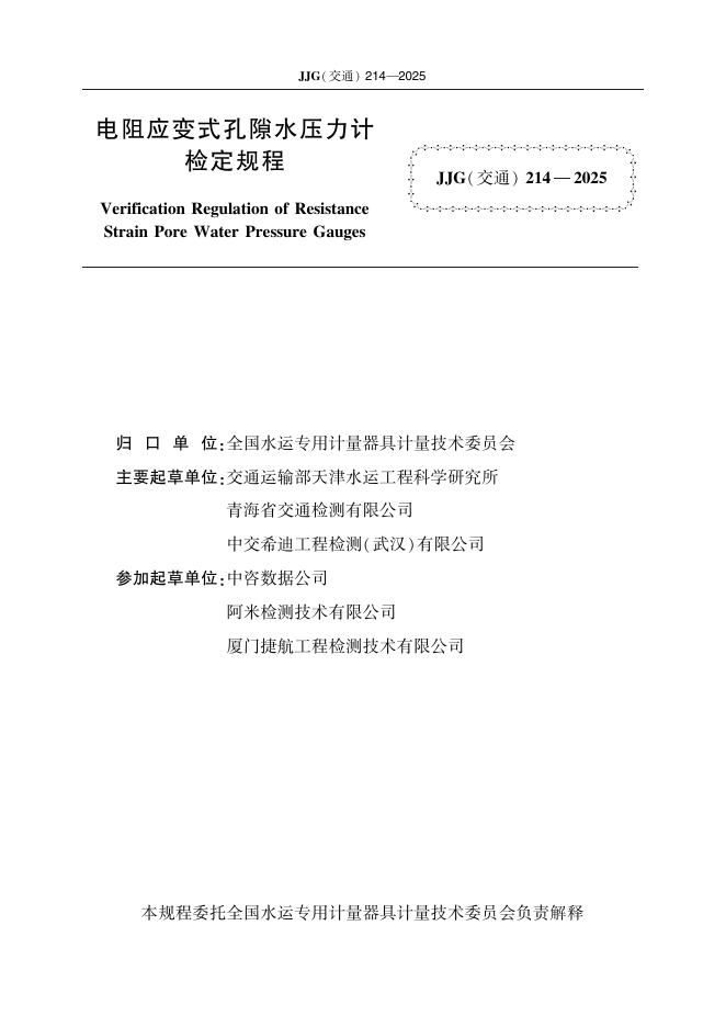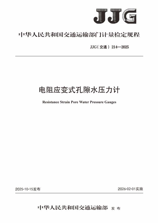 JJG(交通)214-2025 电阻应变式孔隙水压力计