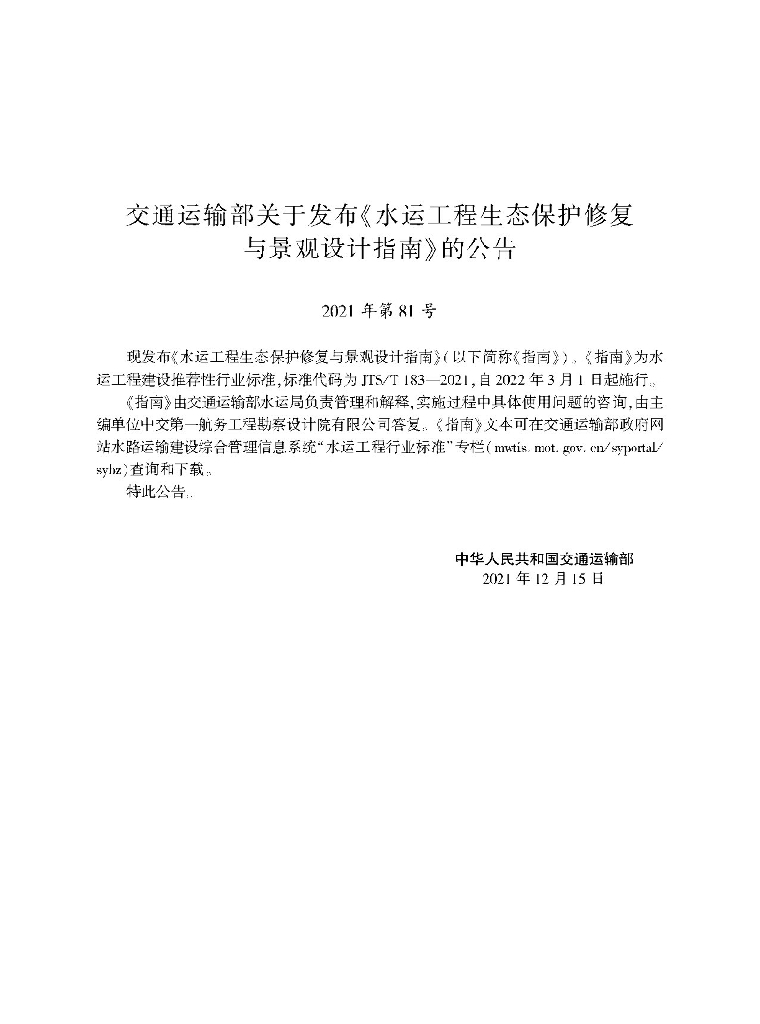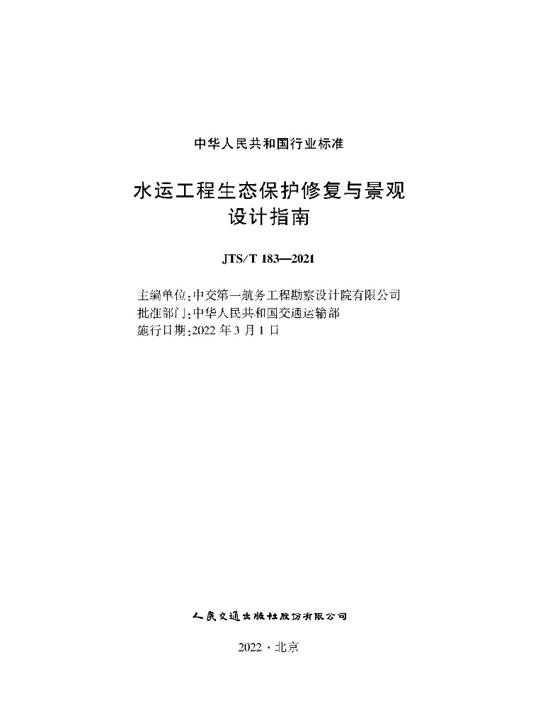 JTS/T 183-2021 水运工程生态保护修复与景观设计指南