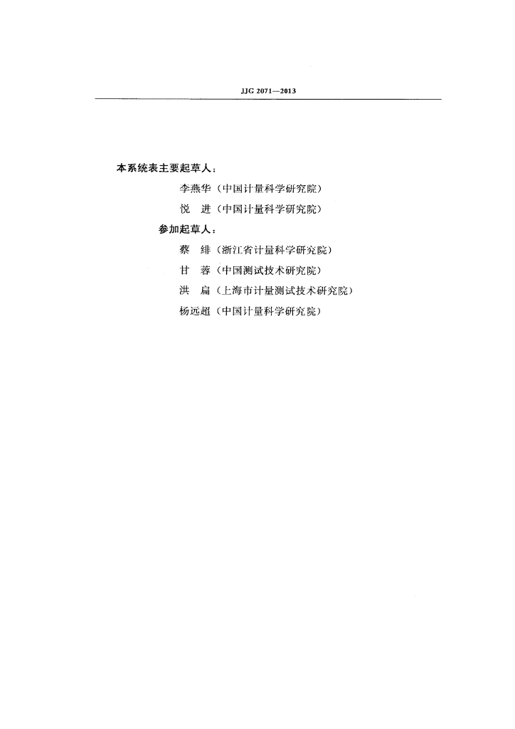 李燕华(中国计量科学研究院)、悦进(中国计量科学研究院)、蔡绯(浙江省计量科学研究院)、甘蓉(中国测试技术研究院)、洪扁(上海市计量测试技术研究院)、杨远超(中国计量科学研究院)