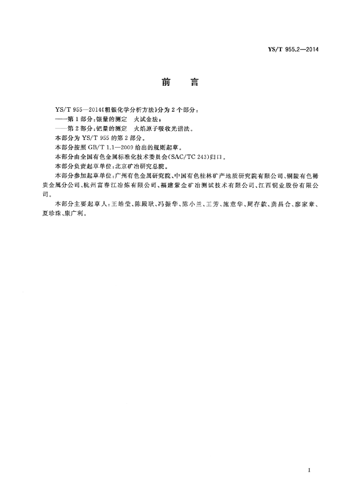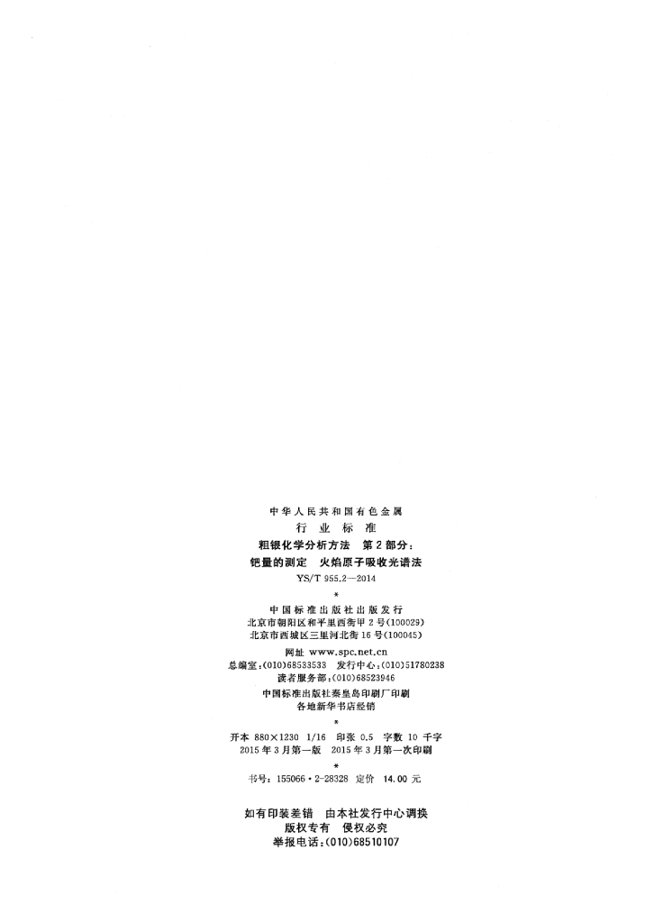 YS/T 955.2-2014 粗银化学分析方法 第2部分:钯量的测定火焰原子吸收光谱法