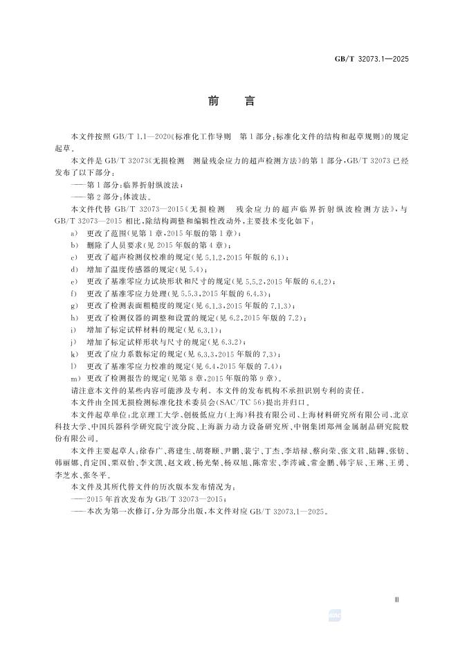 GB/T 32073.1-2025 无损检测 测量残余应力的超声检测方法 第1部分:临界折射纵波法