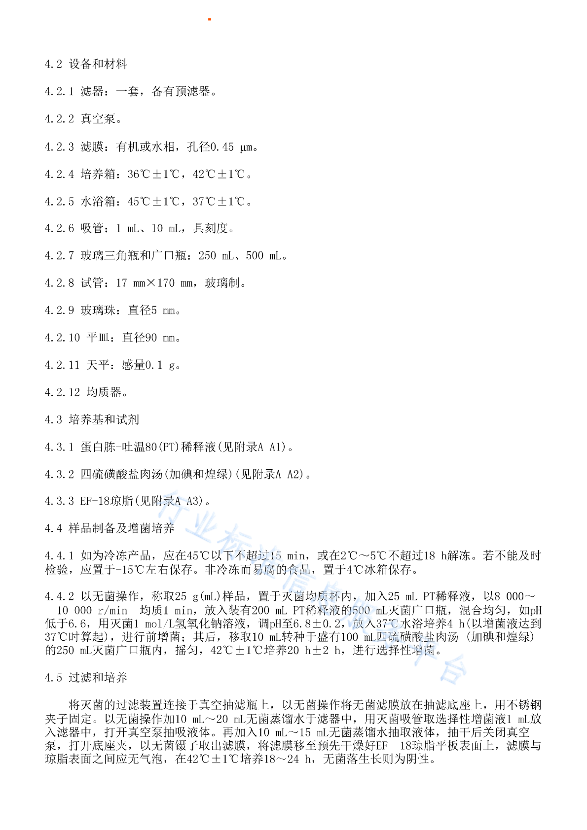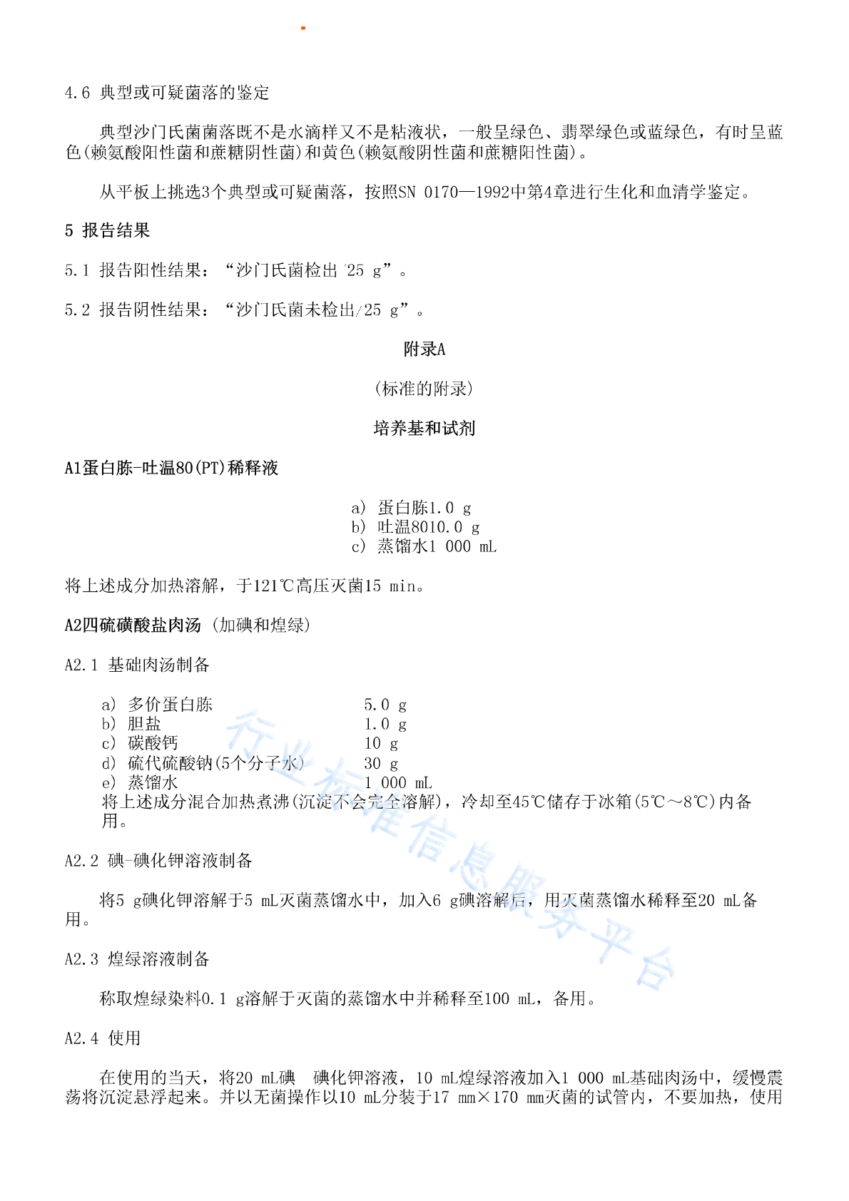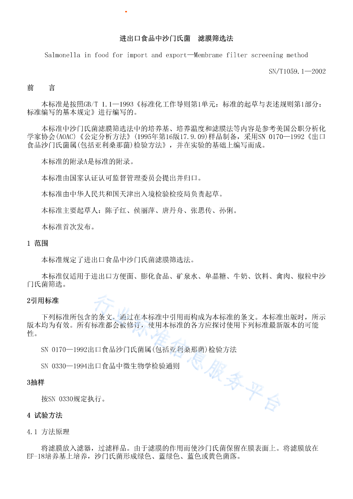 SN/T 1059.1-2002 进出口食品中沙门氏菌--滤膜筛选法