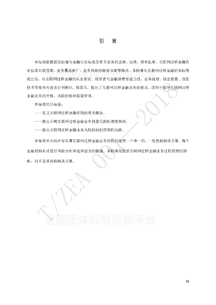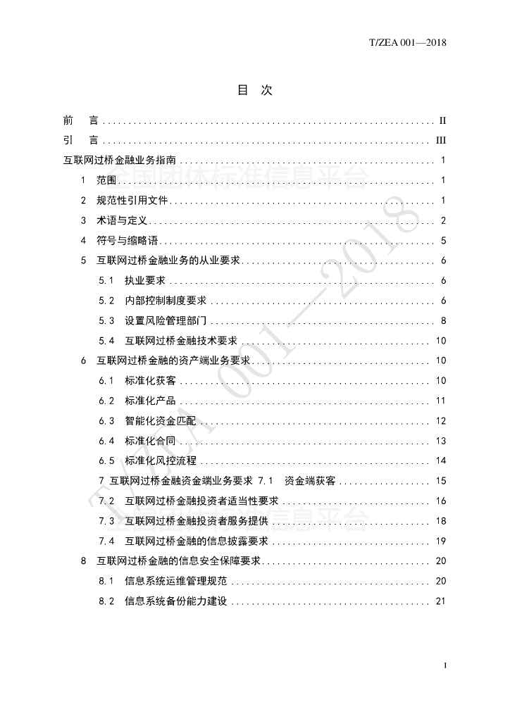 T/ZEA 001-2018 互联网过桥金融业务指南