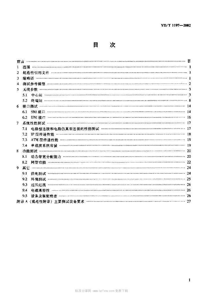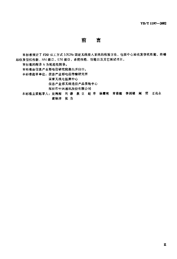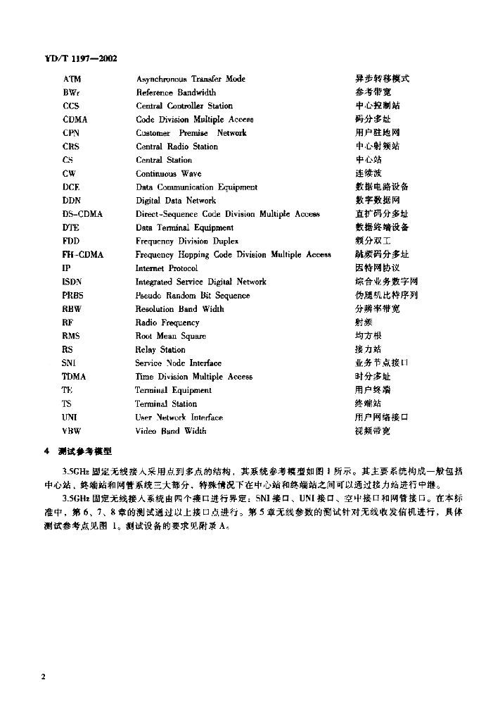 YD/T 1197-2002 接入网测试方法——3.5GHz固定无线接入