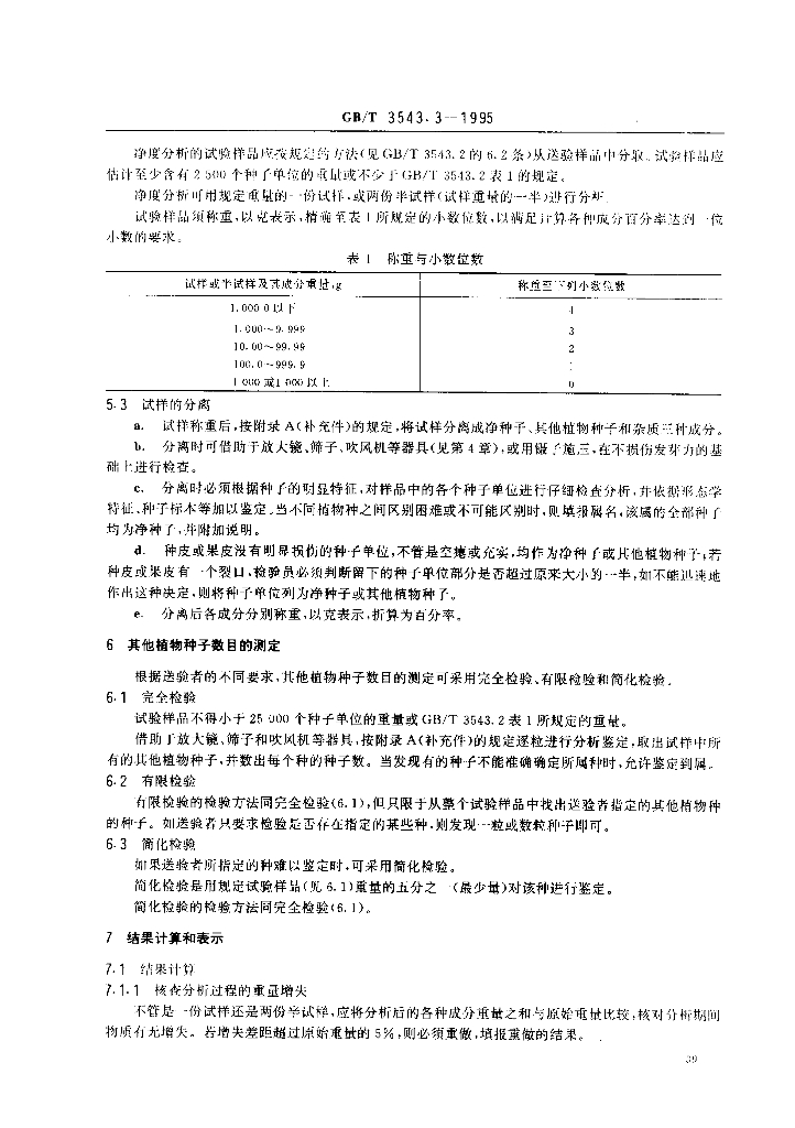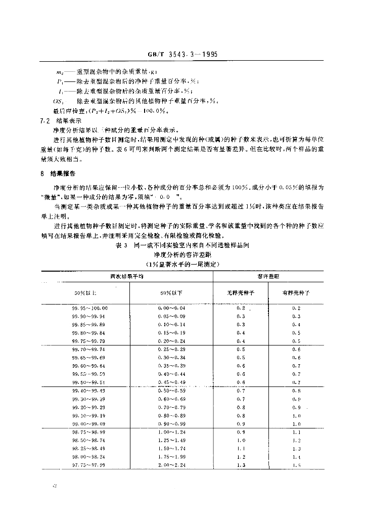 GB/T 3543.3-1995 农作物种子检验规程 净度分析