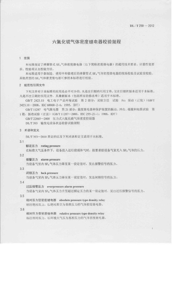 DL/T 259-2012 六氟化硫气体密度继电器校验规程