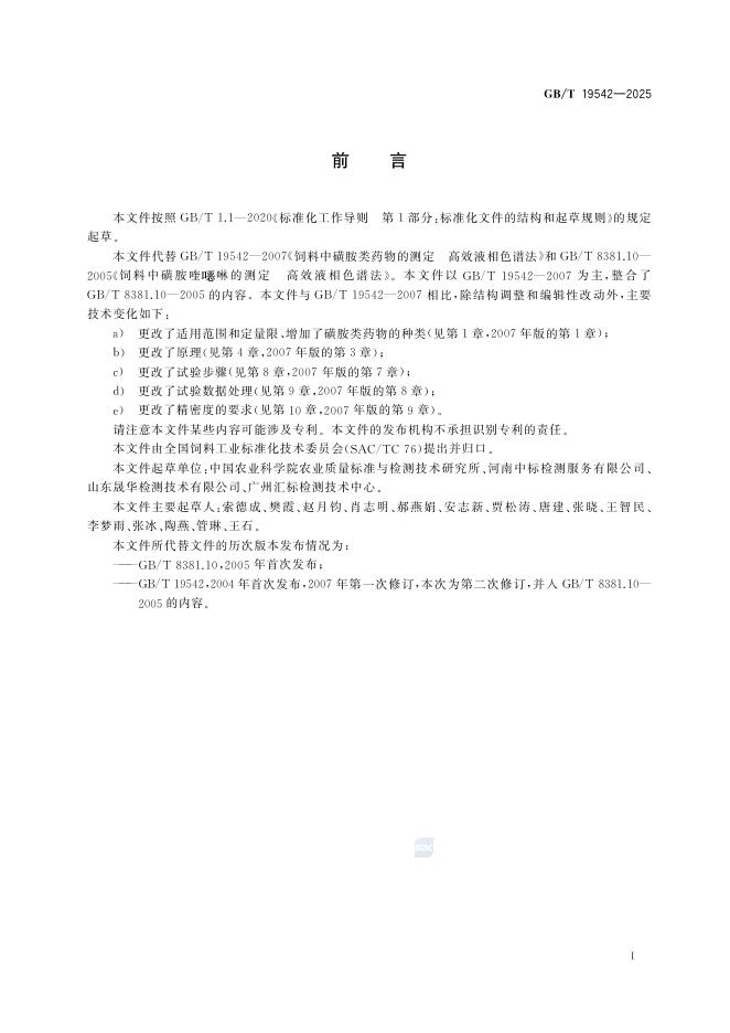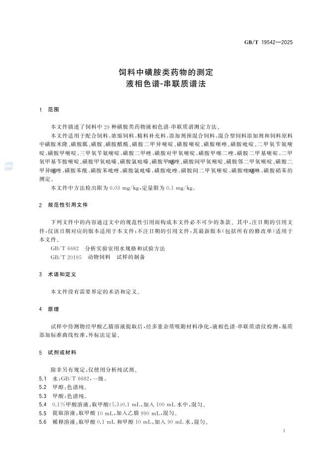 GB/T 19542-2025 饲料中磺胺类药物的测定 液相色谱-串联质谱法