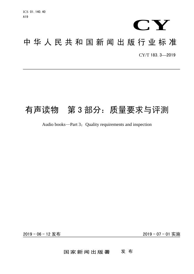 CY/T 183.3-2019 有声读物 第3部分:质量要求与评测
