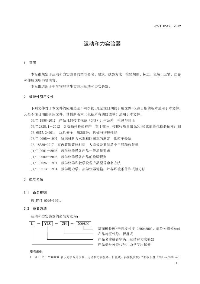 JY/T 0512-2019 运动和力实验器