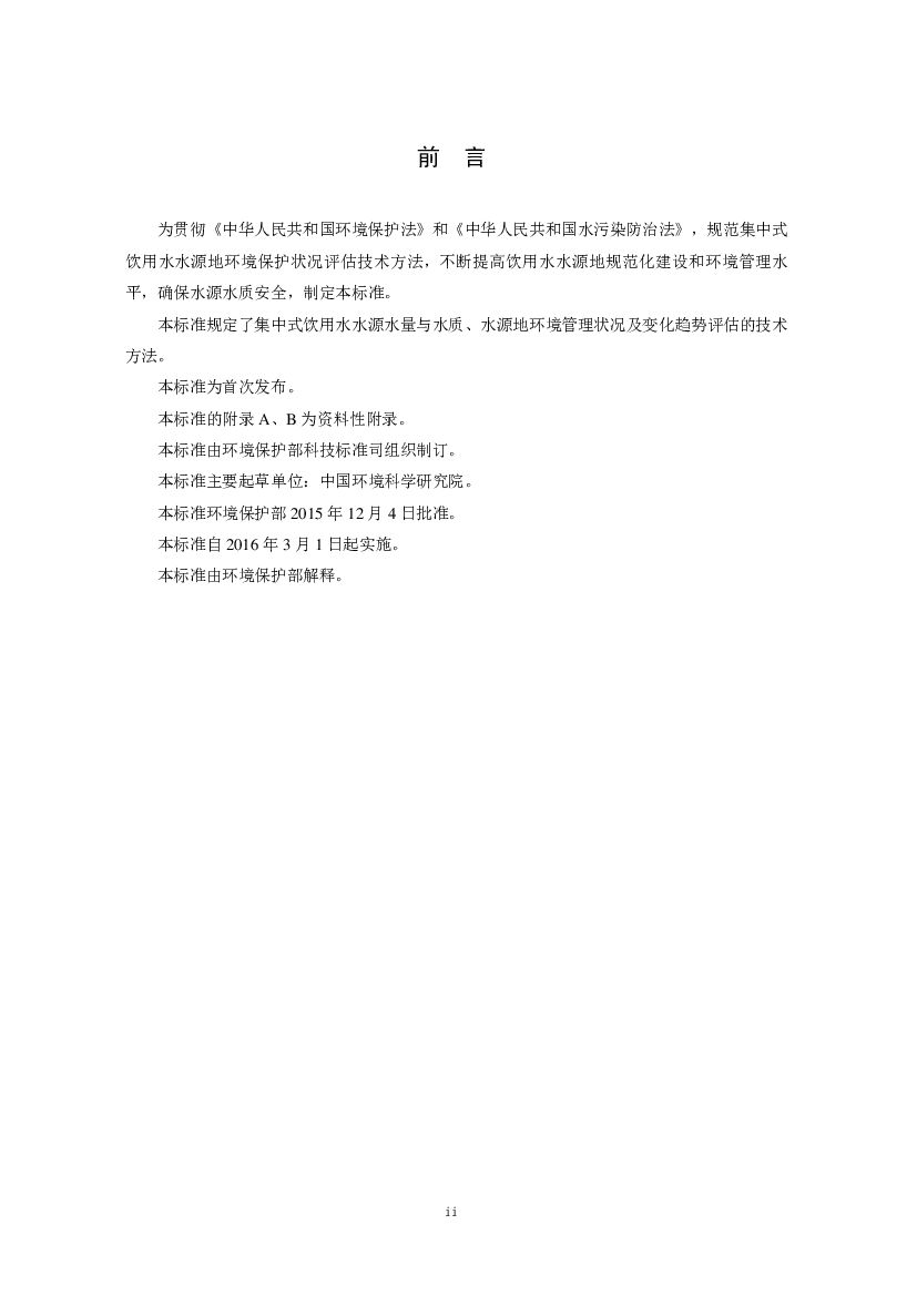 HJ 774-2015 集中式饮用水水源地环境保护状况评估技术规范