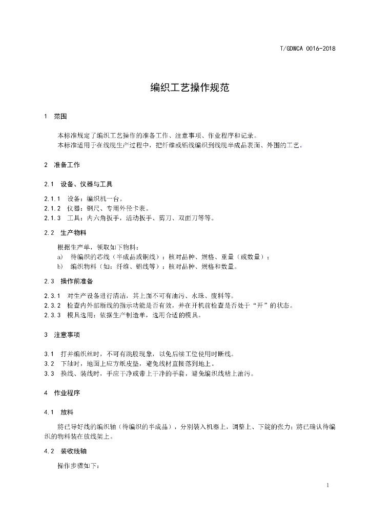 T/GDWCA 0016-2018 编织工艺操作规范