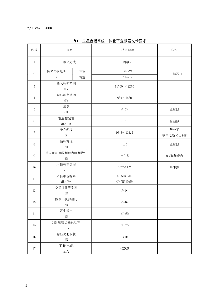 GY/T 232-2011 卫星直播系统一体化下变频器技术要求和测量方法
