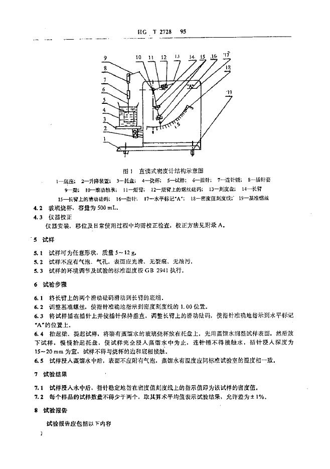 HG/T 2728-1995 橡胶密度的测定 直读法