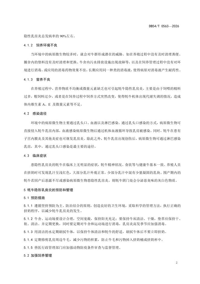 DB54/T 0563-2026 牦牛隐形乳房炎的诊断与防治技术规程