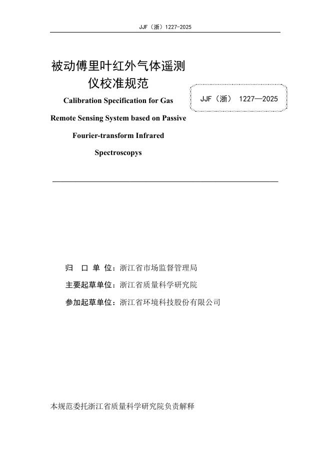 JJF(浙)1227-2025 被动傅里叶红外气体遥测仪校准规范
