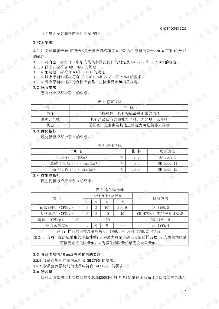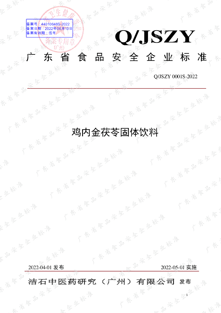 Q/JSZY 0001S-2022 鸡内金茯苓固体饮料