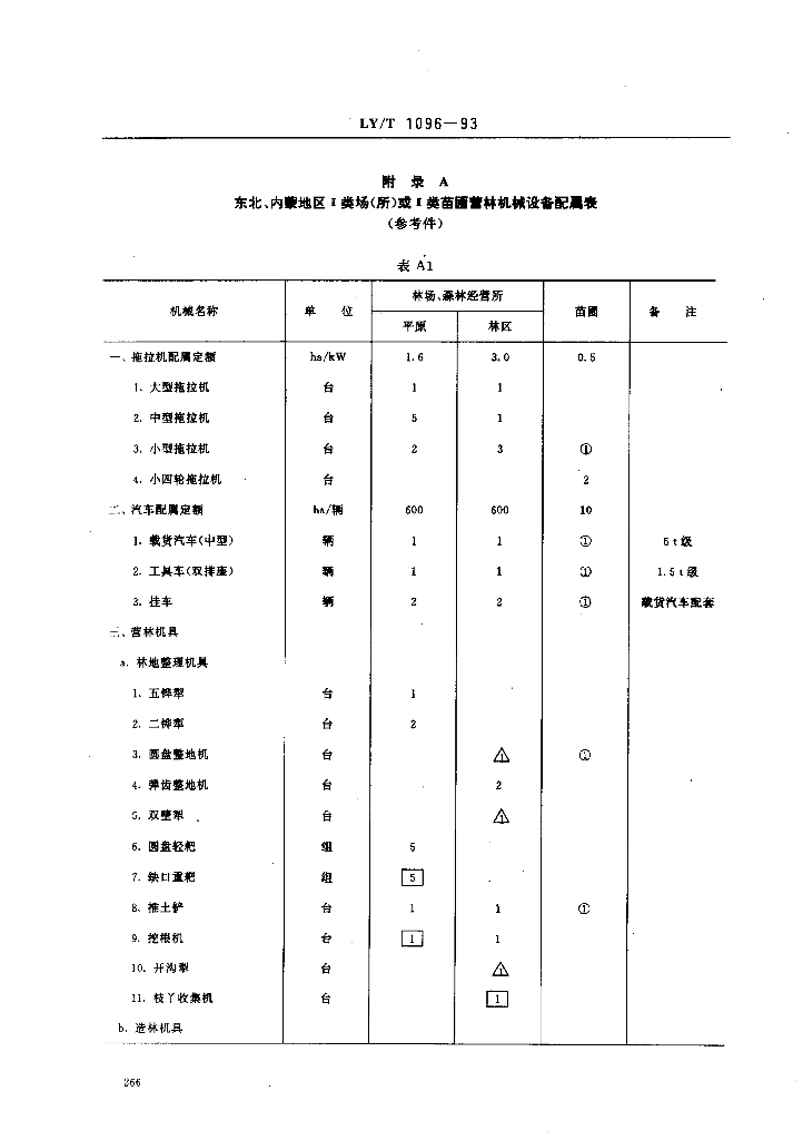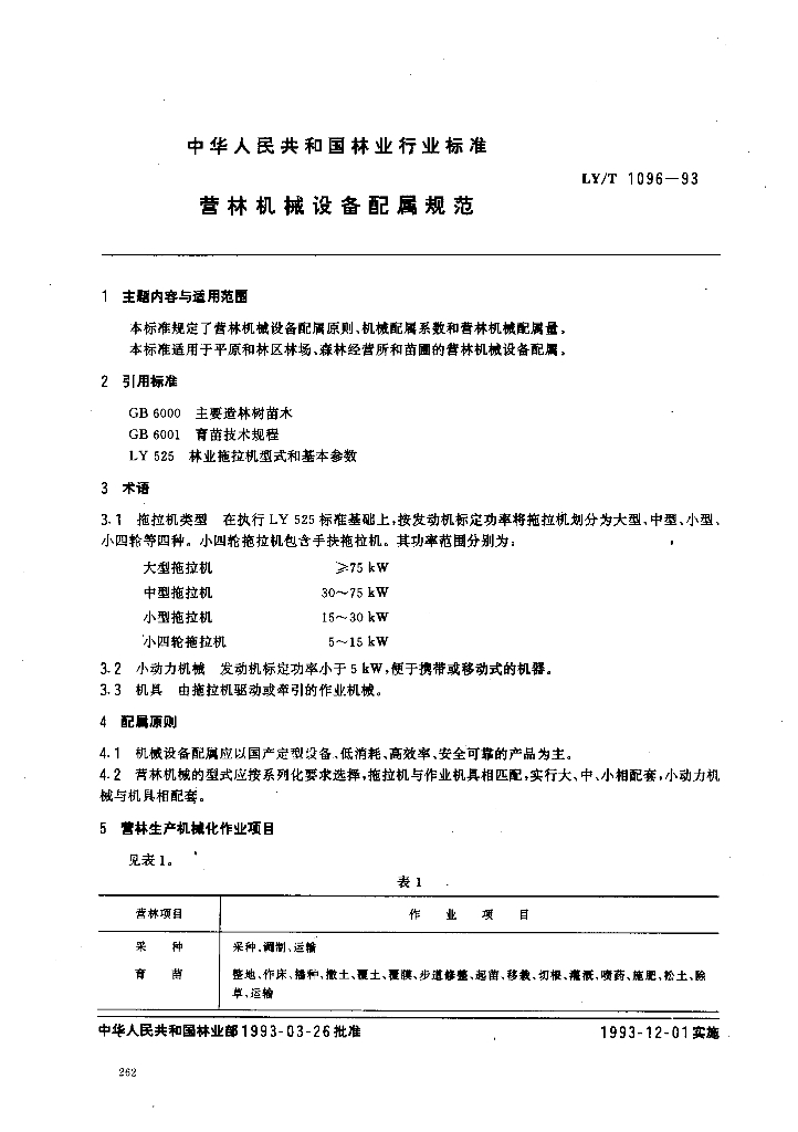 LY/T 1096-1993 营林机械设备配属规范
