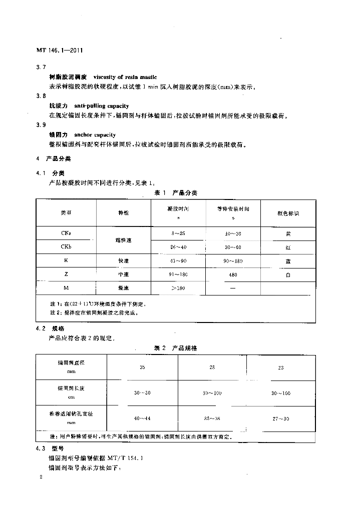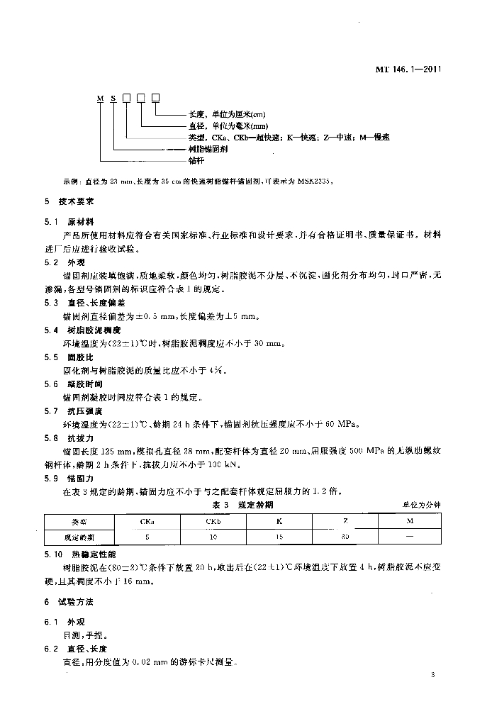 MT 146.1-2011 树脂锚杆 第1部分:锚固剂